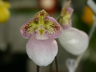 | Paph. bellatulum 'Bon' | Paph. delenatii var. album '101' |