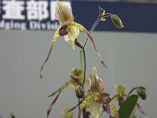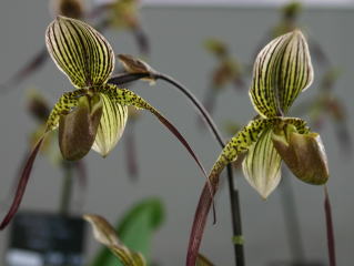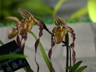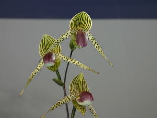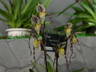 | Paph. St. Swithin 'Takeshi' | Paph. philippinense x Prince Edward of York 'N. Hitomi' |