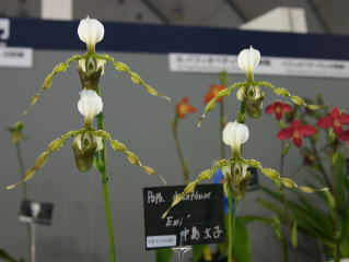 | Phrag. Belle Hougue Point 'Tsukubane' | Paph. Screaming Eagle 'Komae' |