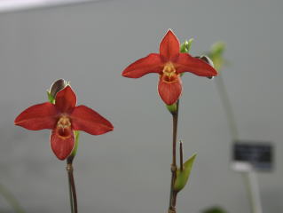 | Paph. laevifolium 'Tokyo Red' | Paph. rothschildianum 'Furuyama #18' |