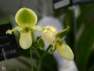 | Paph. leucochilum 'Riverside' | Paph. malipoense 'Chiyoko' |
