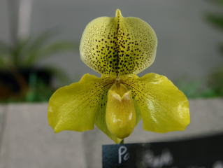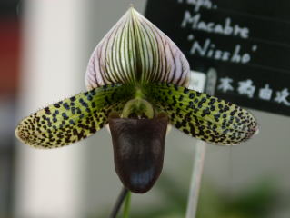 | Paph. Macabre 'Nissho' | Paph. (Memoria George Betzold x concolor) 'Bios' |