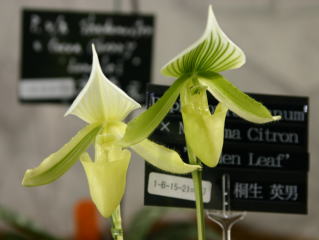 | Paph. primlinum 'Aki' | Paph. liemianum 'Mugen U' |